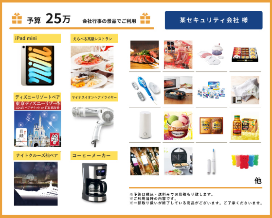 勘定科目の処理方針が決まったら、次は景品選びです。法人向けのまとめ注文や予算相談に対応した窓口があるので、あわせてご確認ください。