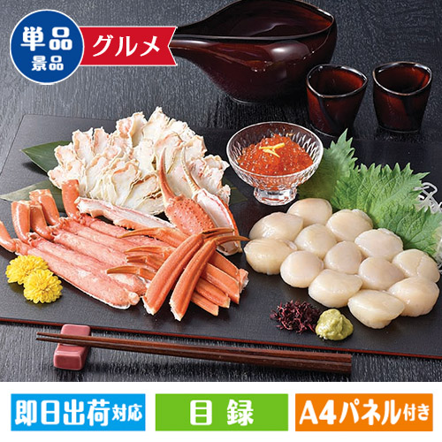 北海道の刺身用ほたて貝柱といくら醤油漬けをセットにいたしました。ボイルずわいがにも一緒にご賞味下さい。●ボイルずわいがにハーフポーション(カナダ又はグリーンランド産)/400g、ほたて貝柱(北海道産)/200g、いくら醤油味/40g●アレルギー:小麦、えび、かに、いくら・さば・大豆